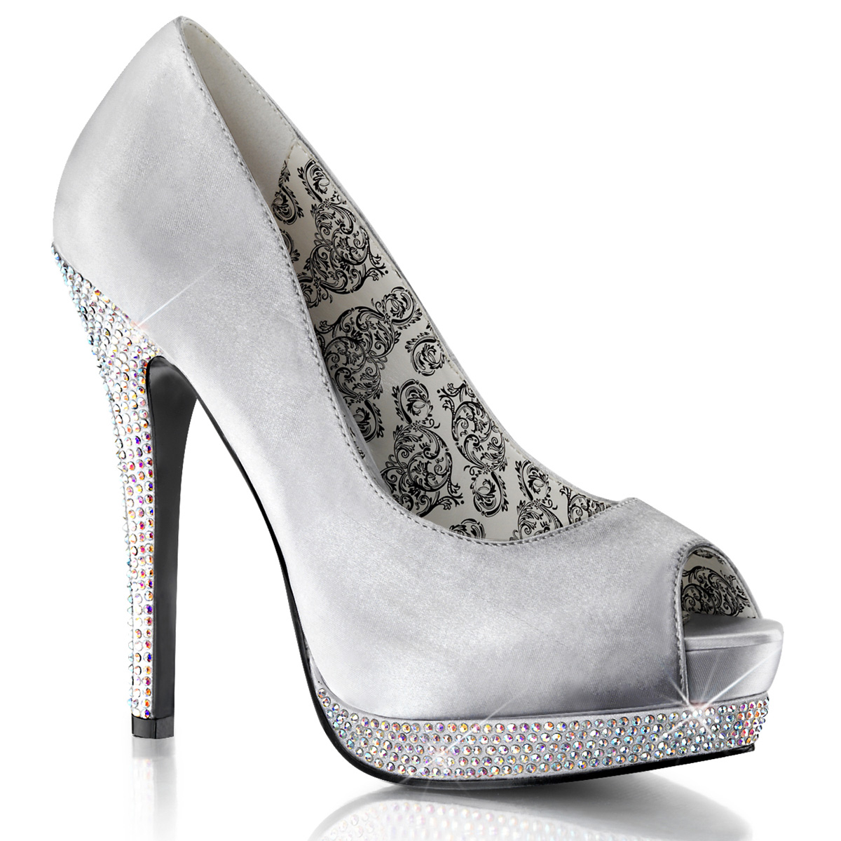 5 1/4"" (13.3cm) Heel, 1 1/2"" (3.8cm) Platform Peep Toe Pump Featuring Rhinestones on Lower Platform