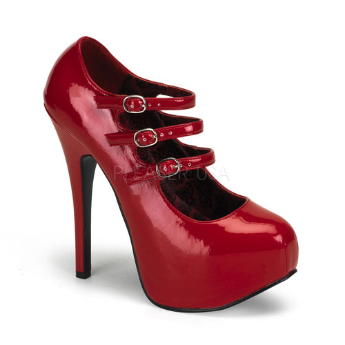 5 3/4"" (14.6cm) Heel, 1 3/4"" (4.5cm) Concealed Platform, 3 Buckle Adjustable Straps Patent Upper Pump