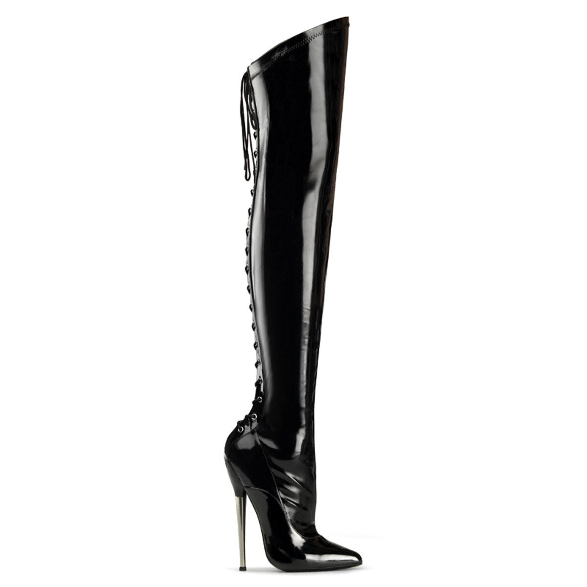 6 1/4"" (15.9cm) Solid Brass Heel Back Lace Up Thigh Boot, Full Inner Side Zipper