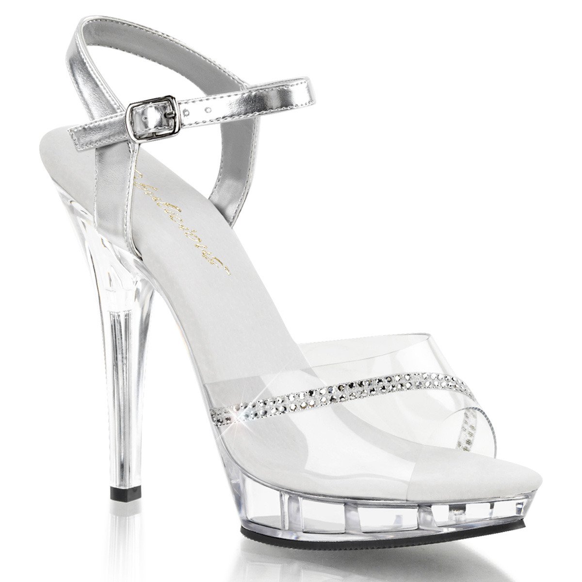 5"" (12.7cm) Heel, 3/4"" (1.9cm) Platform Ankle Strap Sandal Featuring Rhinestone Banded Vamp