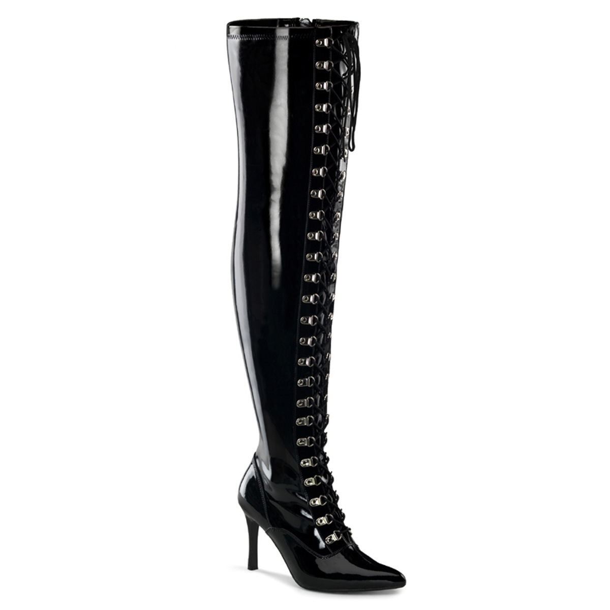 4"" (10.2cm) Heel, Wide Width/Shaft, Lace Up Thigh High Boot Full Inner Side Zipper