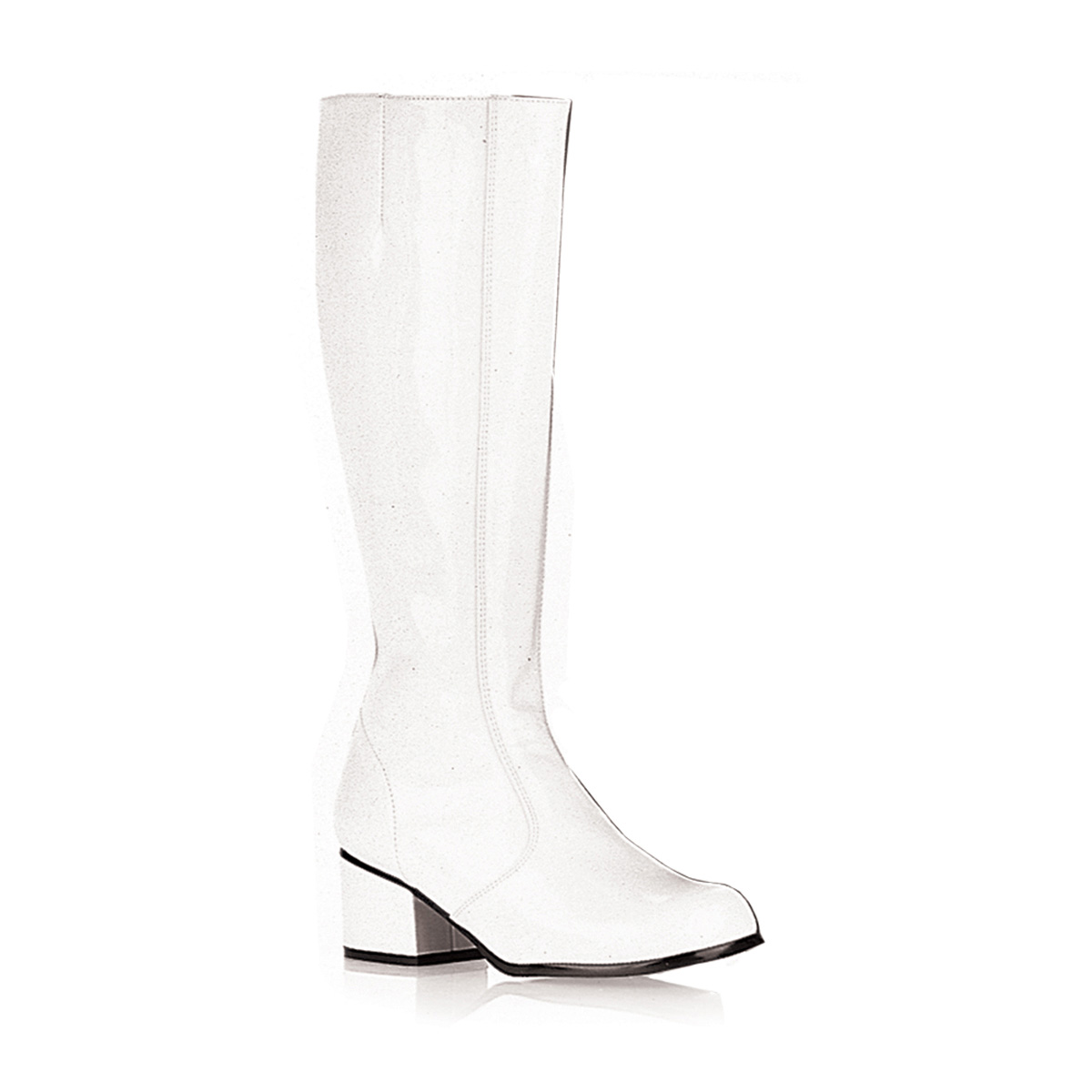 Shiny White Chunky-Heel Knee High Single Sole Boots