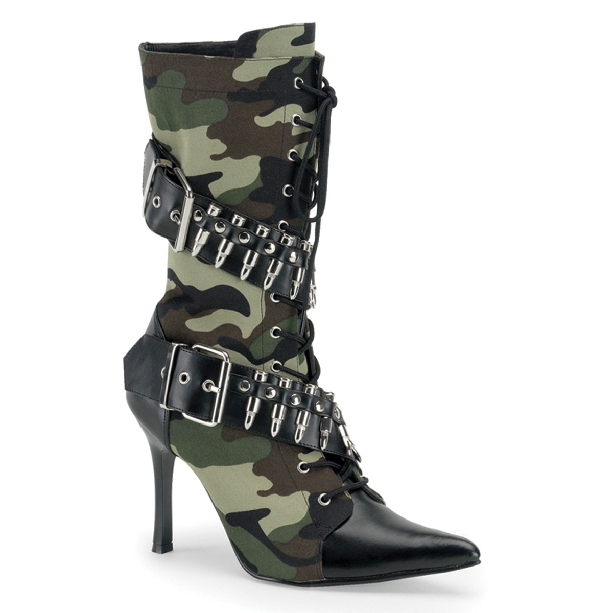 3 3/4"" (9.5cm) Heel, Camouflage Military Boot with Bullets, Full Inner Side Zipper