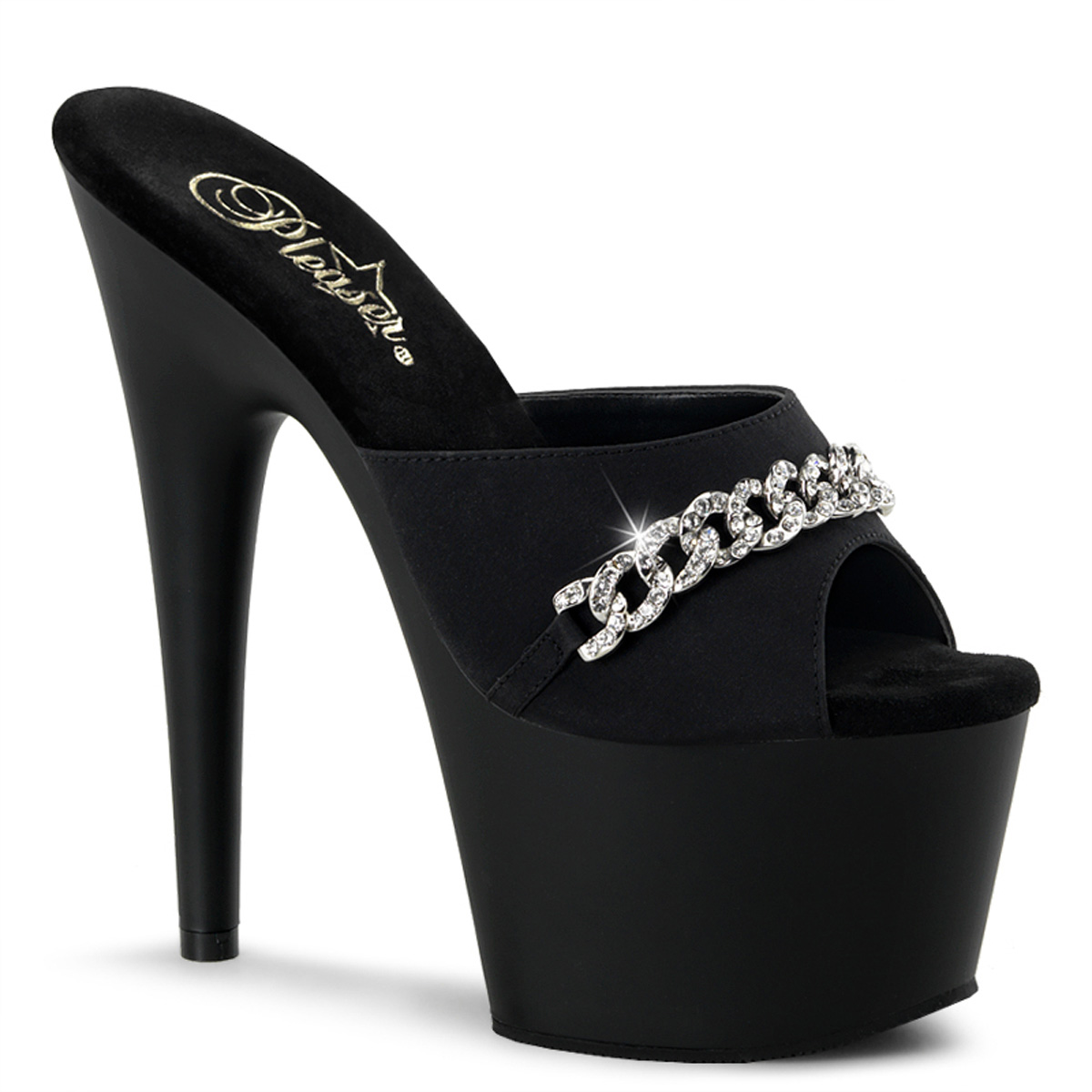7"" (17.8cm) Stiletto Heel, 2 3/4"" (7cm) Platform Slide Featuring Rhinestone Chain Embellishment with Neon Glitter