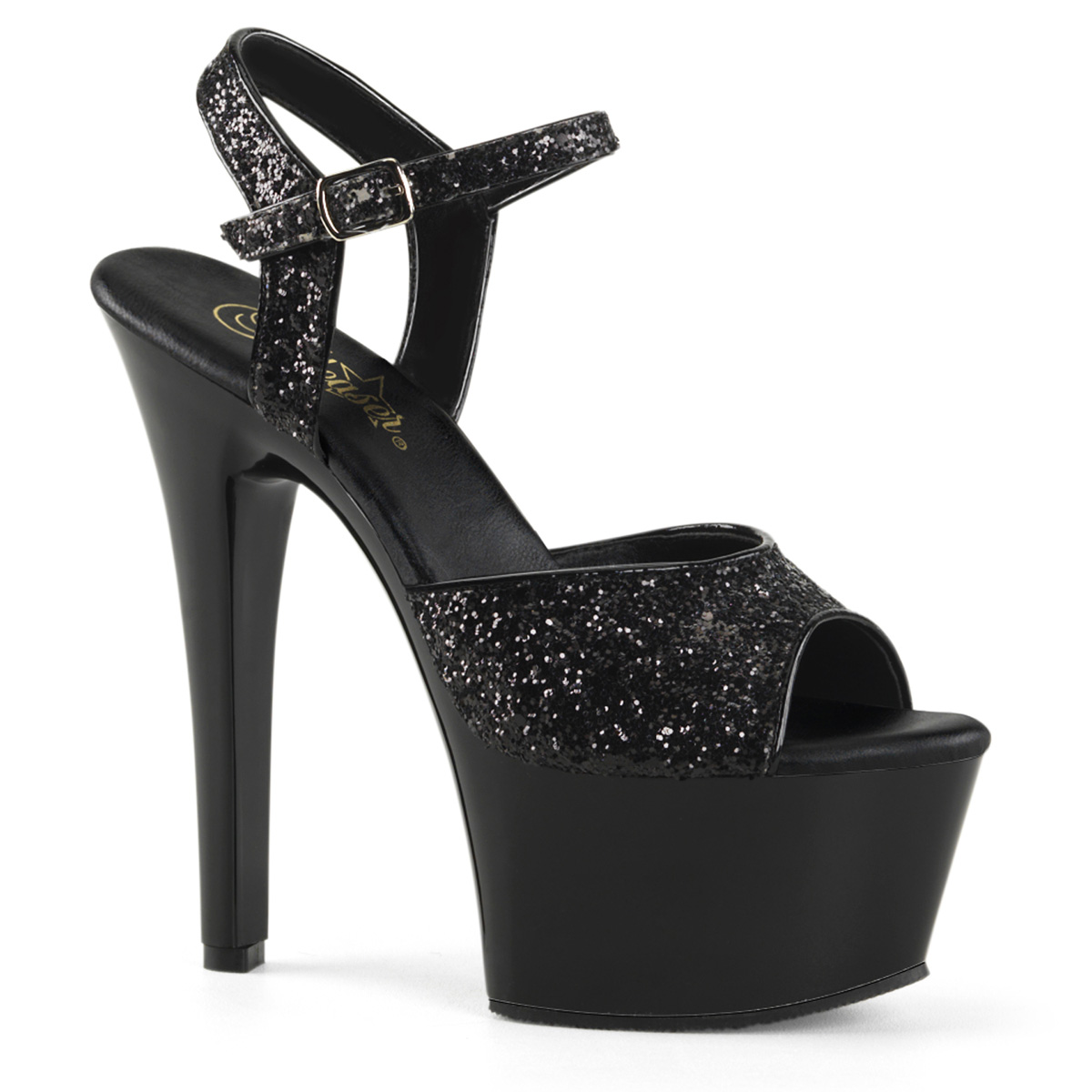 6"" (15.2cm) Heel, 2 1/4"" (5.7cm) Platform Ankle Strap Sandal With Glitter Upper