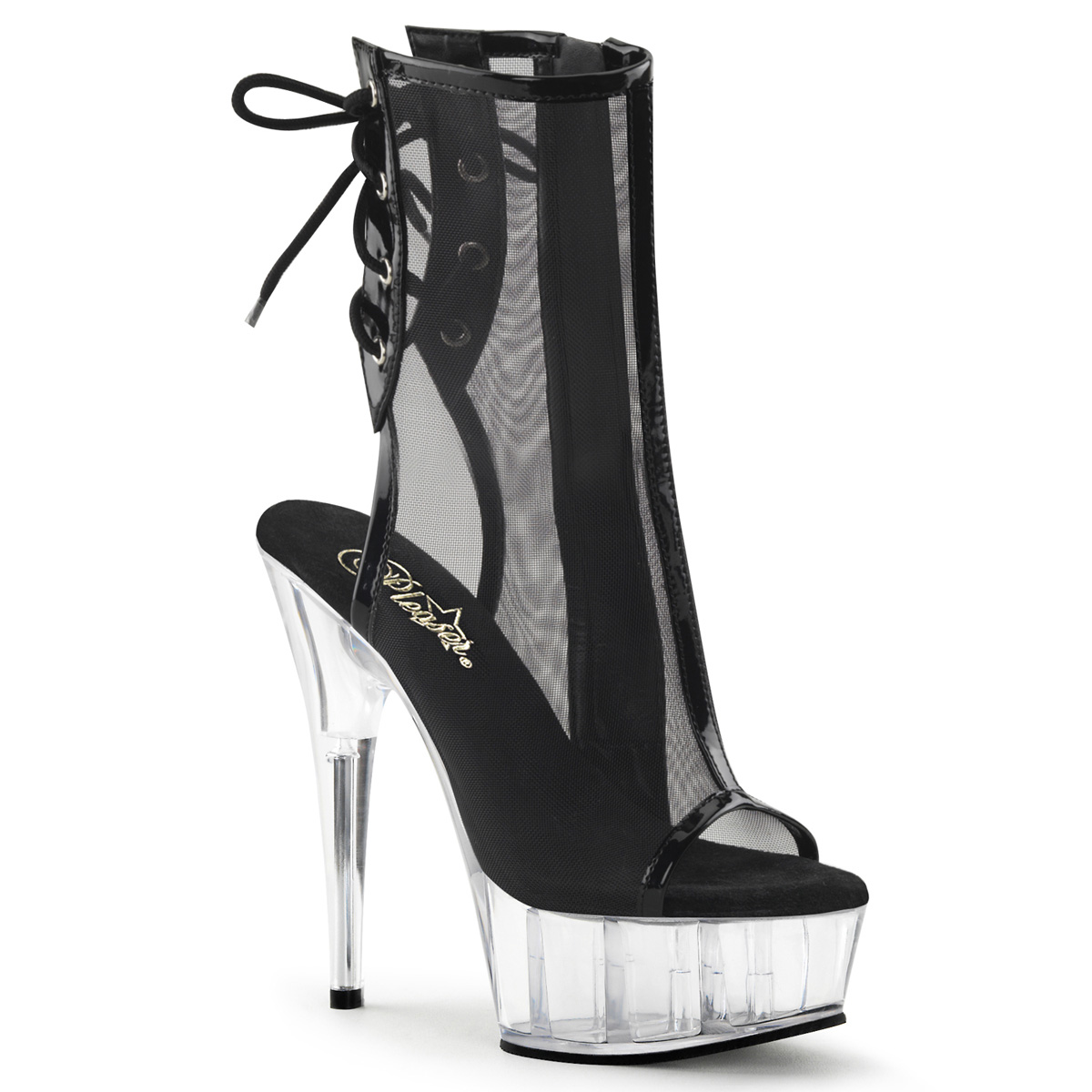 6"" (15.2cm) Stiletto Heel, 1 3/4"" (4.5cm) Platform Open Toe/Heel Back Lace- Up Mesh Ankle Boot, Inside Zip Closure