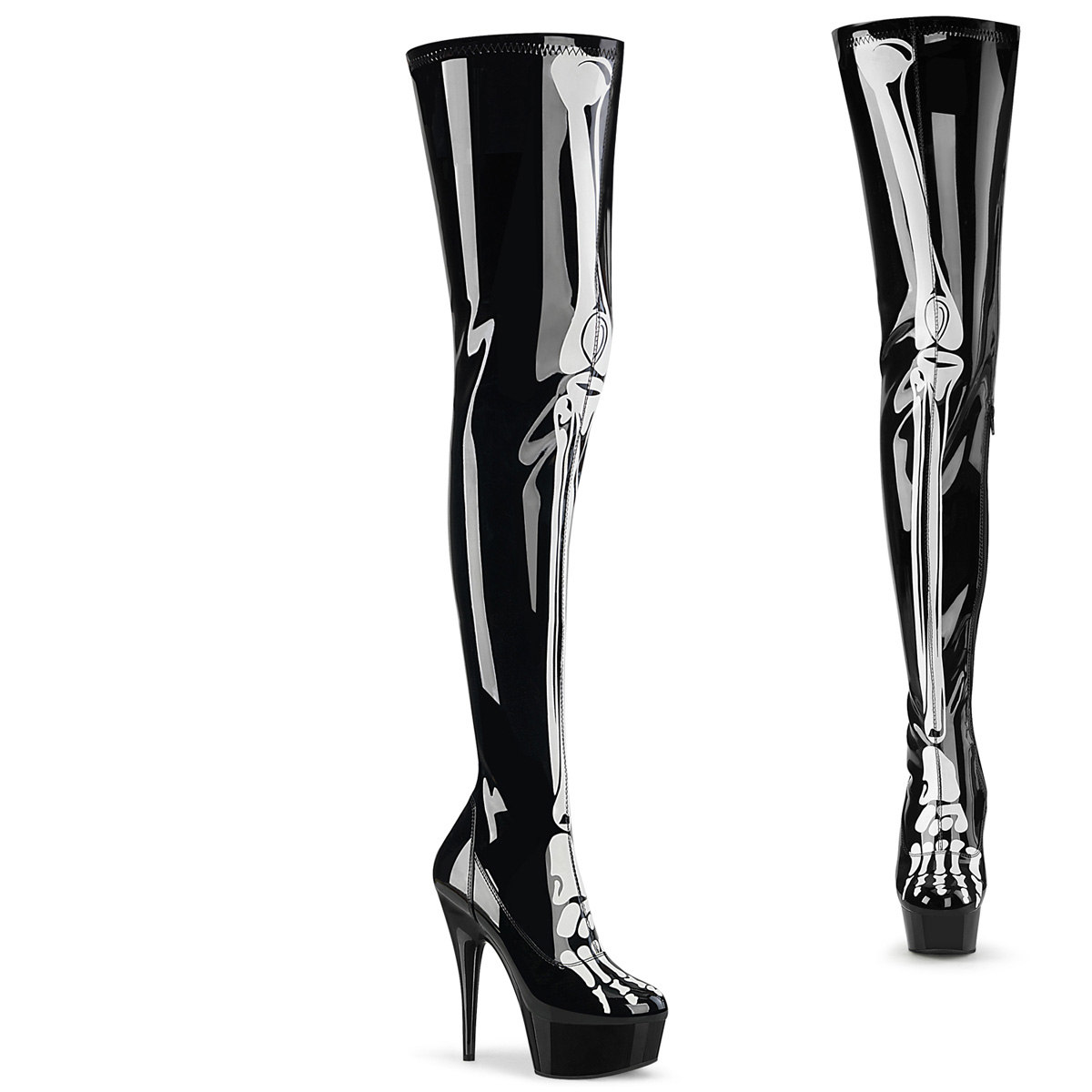 Shiny Black Platform High-Heel Thigh High Boots