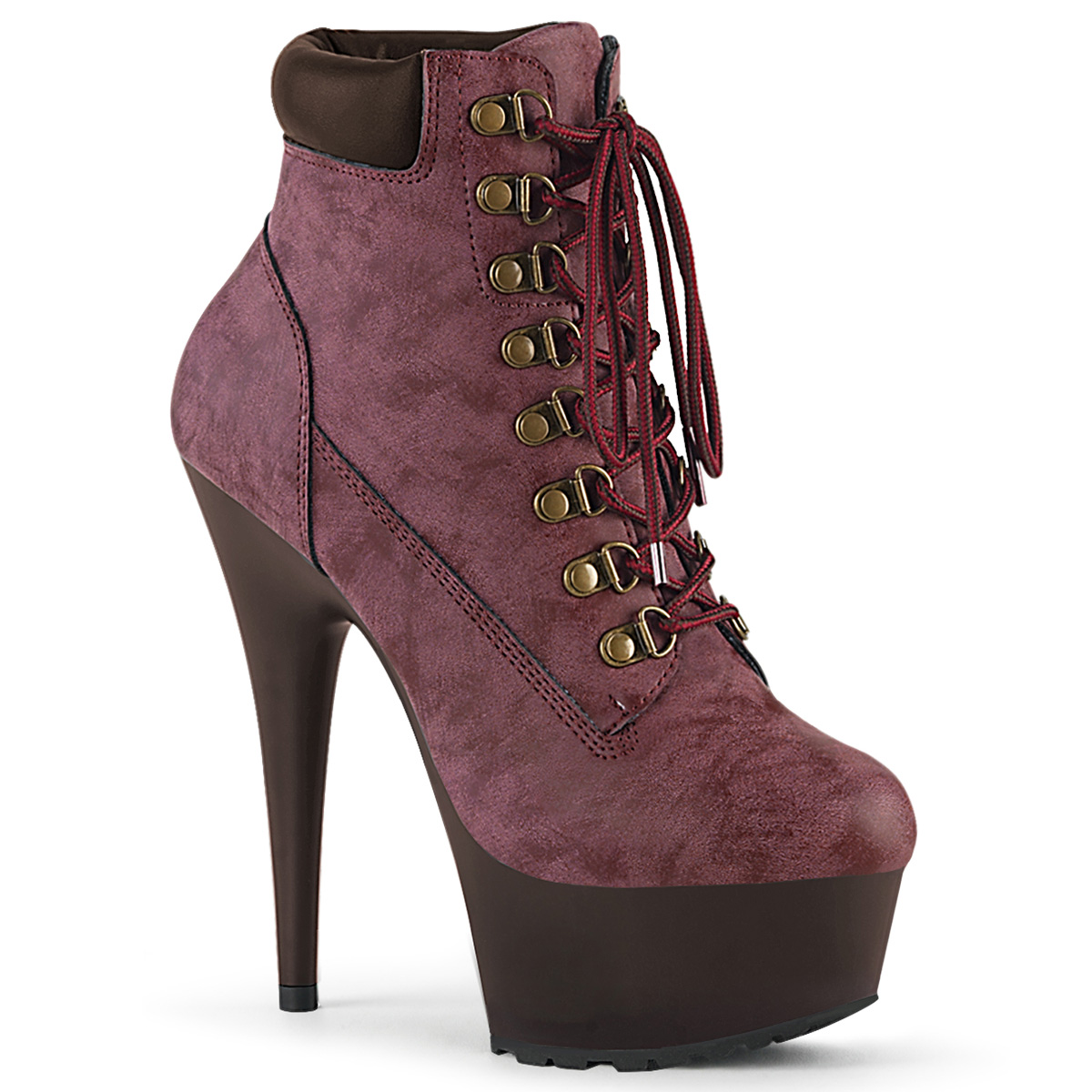 6"" (152mm) Heel, 1 3/4"" (45mm) Platform Lace-up Front Bootie Featuring Padded Collar & Rubber Lug Outsole, Inside Zip Closure
