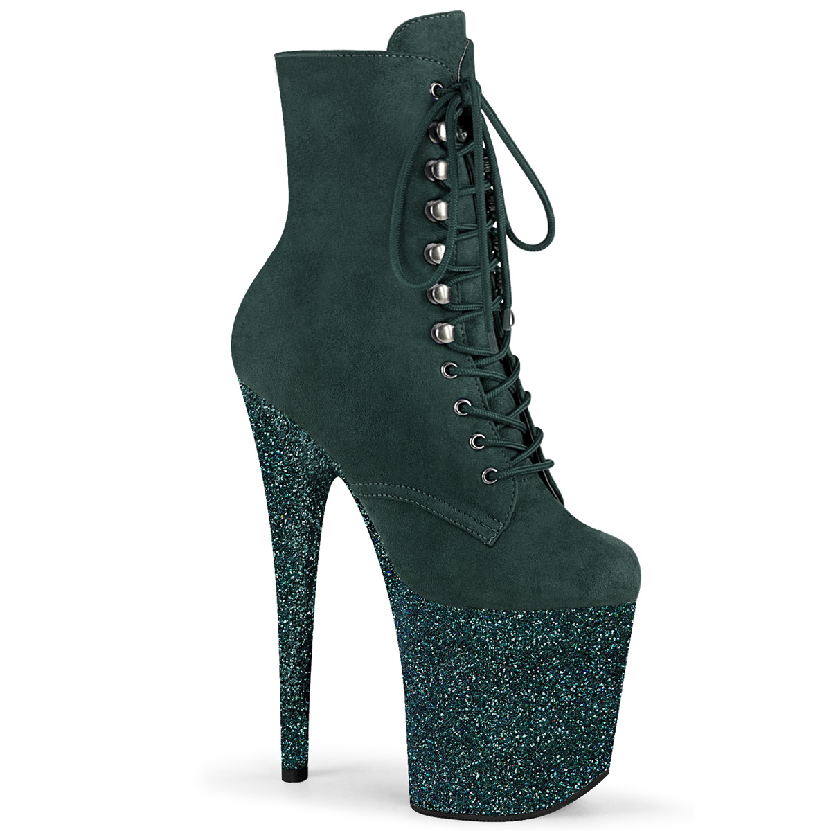 8"" (200mm) Heel, 4"" (100mm) Platform Lace-Up Front Ankle Boot Featuring Fully Wrapped Platform Bottom, Inside Zip Closure