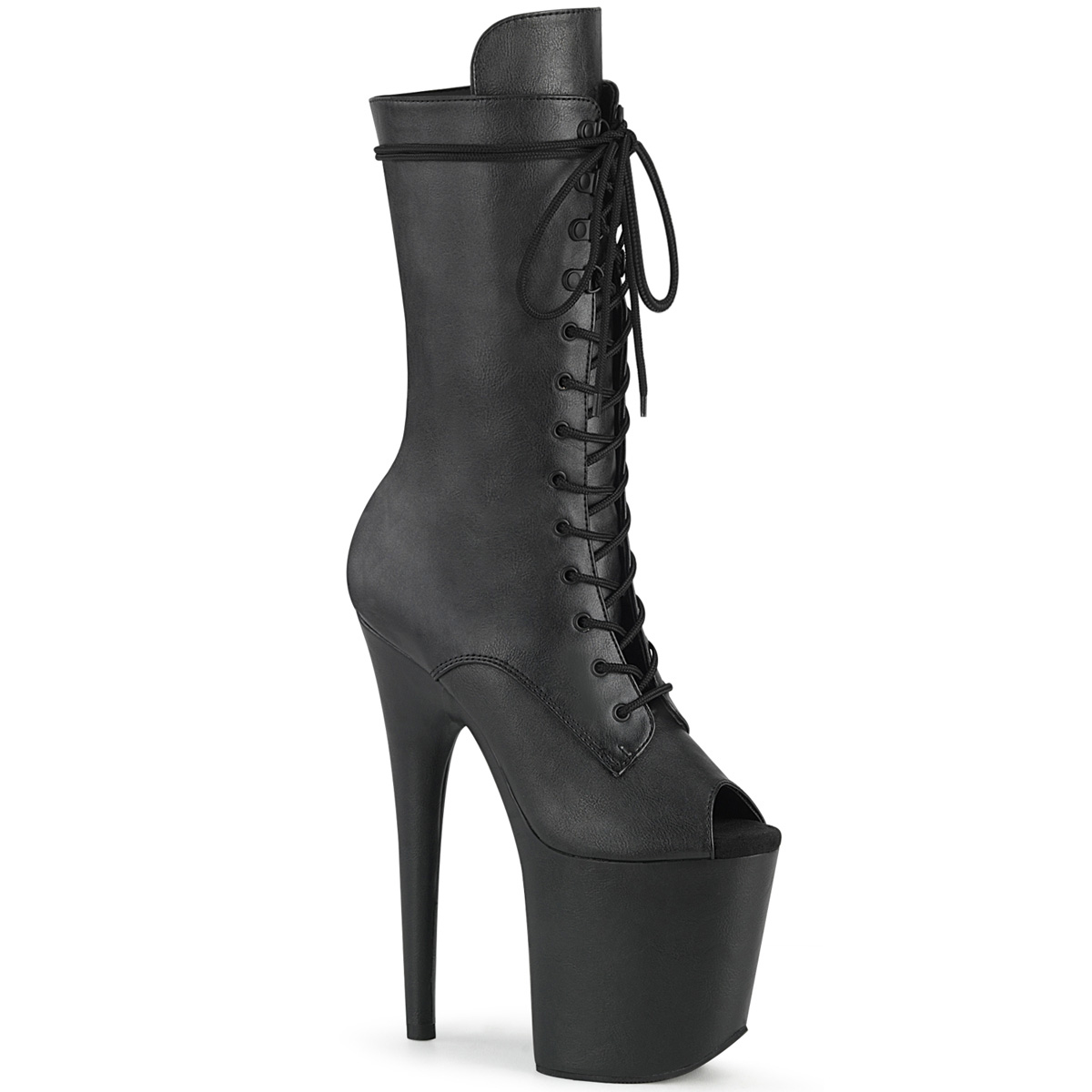 8" Heel, 4" PF Peep Toe Lace-Up Mid Calf Boot, Side Zip