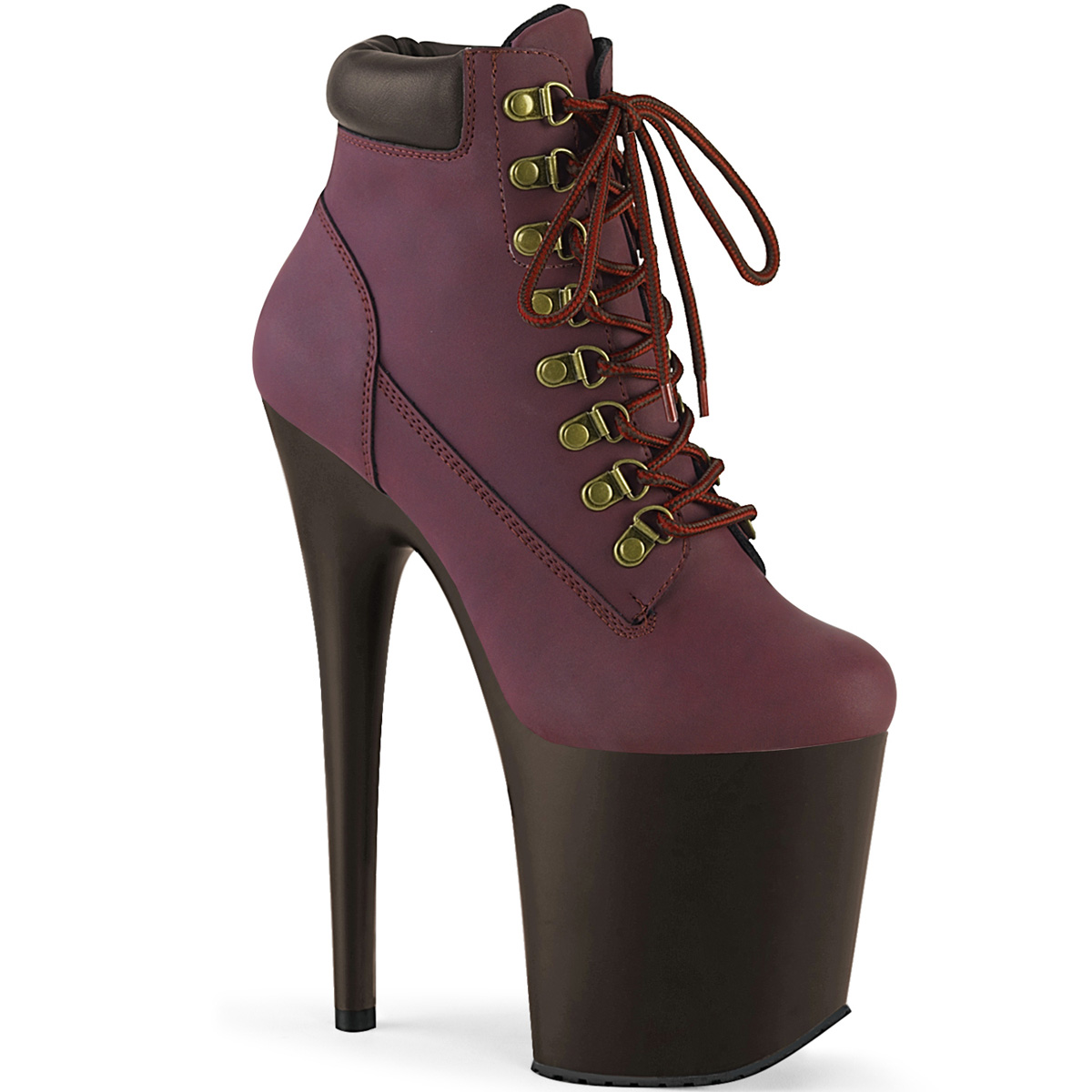 8"" (200mm) Heel, 4"" (100mm) Platform Lace-Up Front Bootie Featuring Padded Collar & Rubber Lug Outsole, Inside Zip Closure