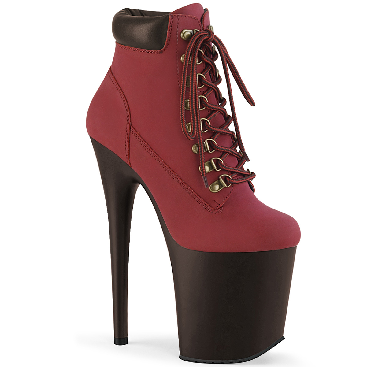 8"" (200mm) Heel, 4"" (100mm) Platform Lace-Up Front Bootie Featuring Padded Collar & Rubber Lug Outsole, Inside Zip Closure