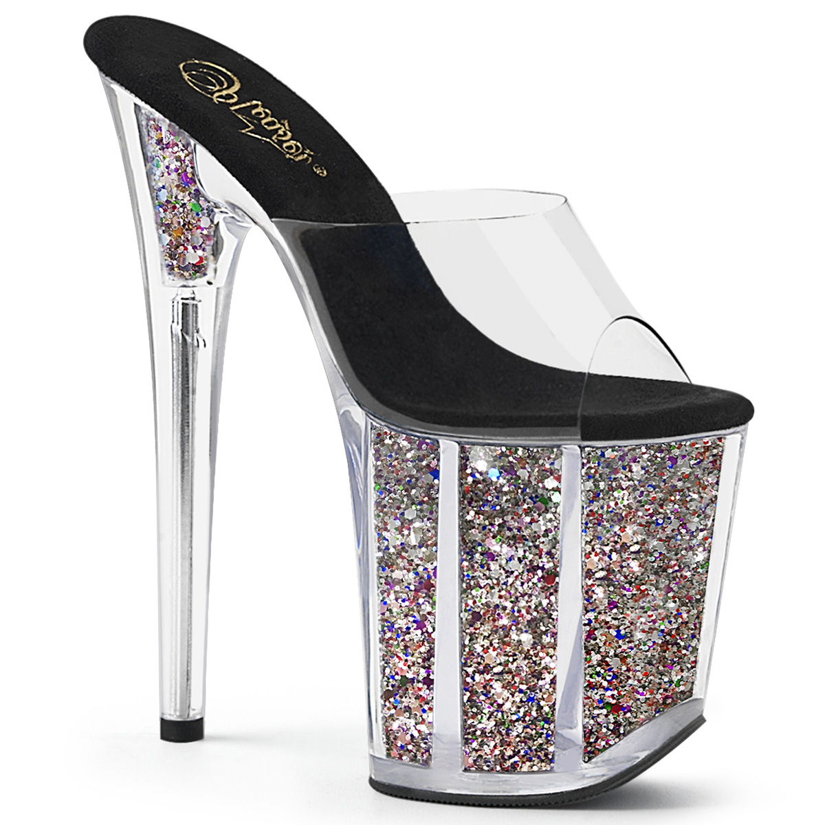 8"" (200mm) Heel, 4"" (100mm) Platform Slide w/Confetti Glitter Inserts in the Platform Bottom