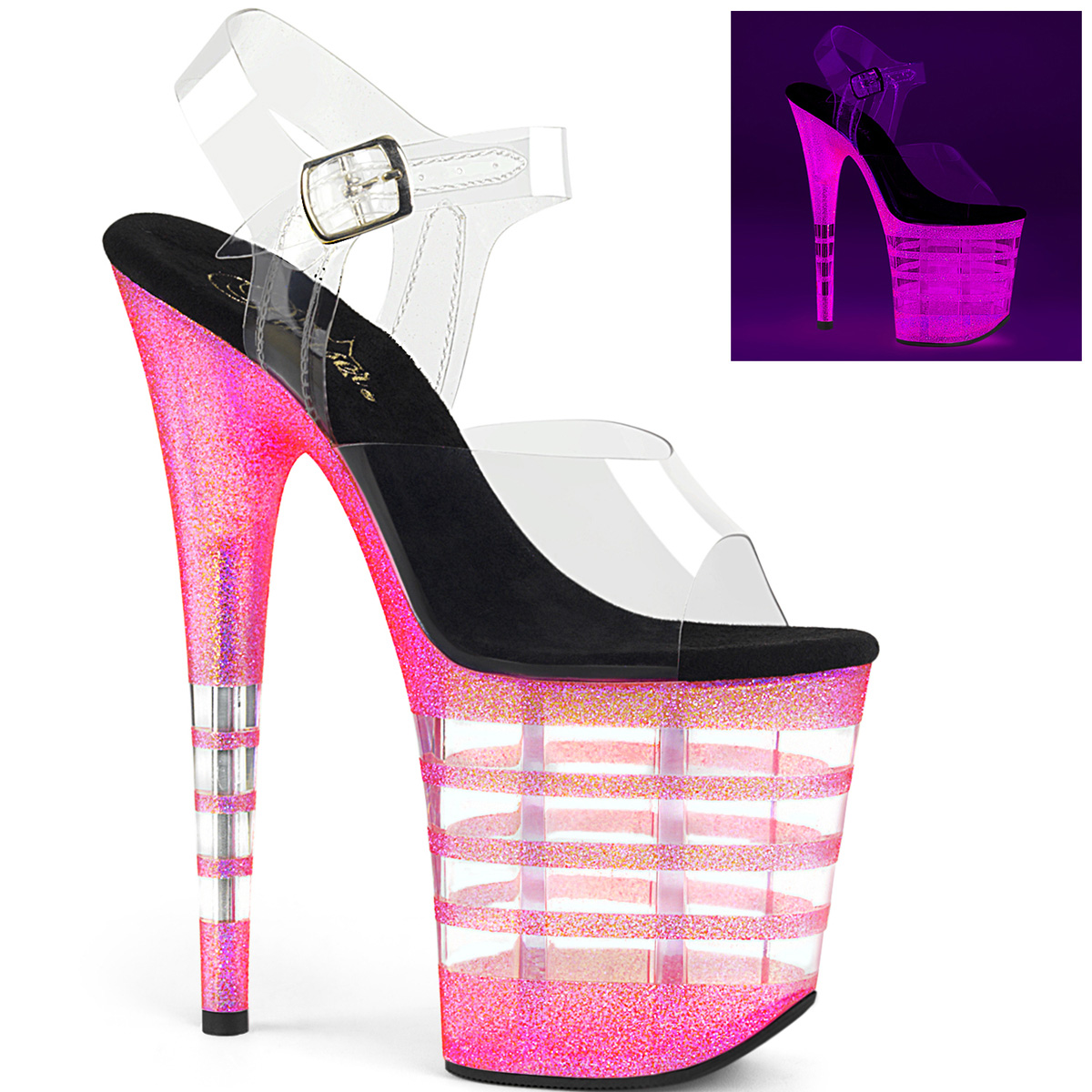 8"" (20.3cm) Stiletto Heel, 4"" (10.2cm) Platform Ankle Strap Sandal Featuring Neon UV Reactive Lines