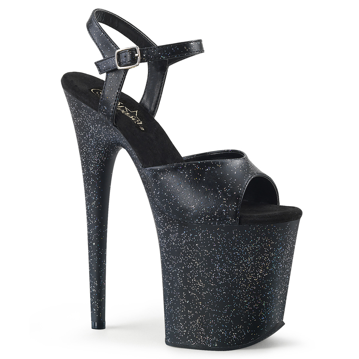 8" Heel, 4" PF Ankle Strap Sandal w/Glitter