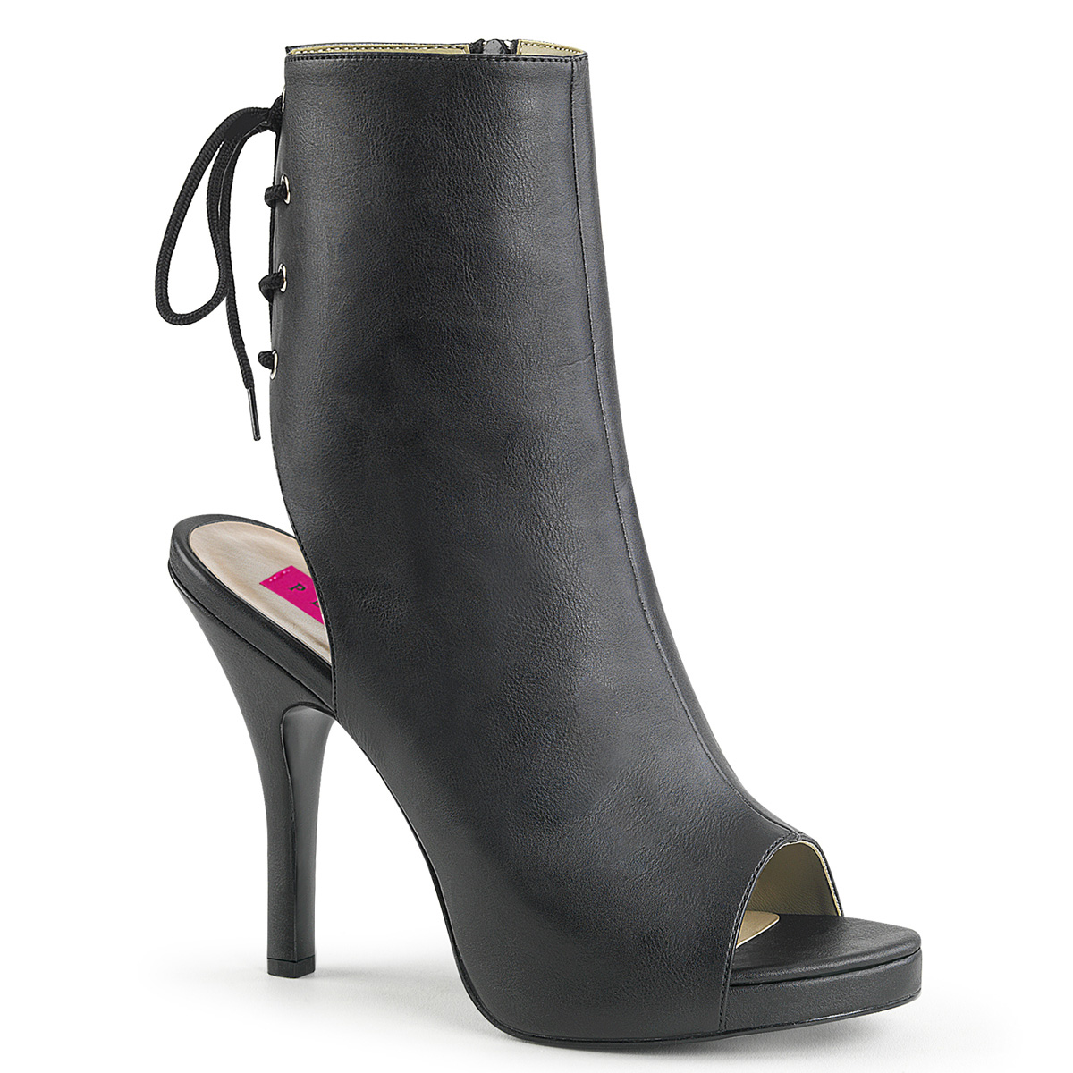 5""(12.7cm) Heel, 1/2""(1.3cm) Open Toe/Heel Back Lace-Up Ankle Boot, Inside Zip Closure