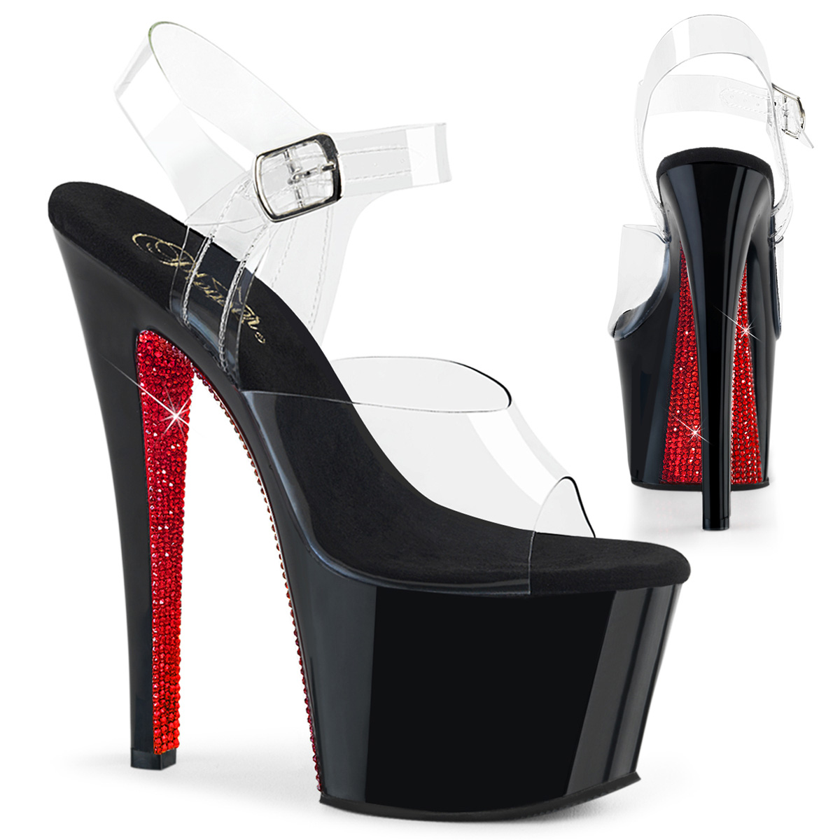 7"" (178mm) Heel, 2 3/4"" (70mm) Platform Ankle Strap Sandal w/ Contrast Rhinestones on the Platform Bottom