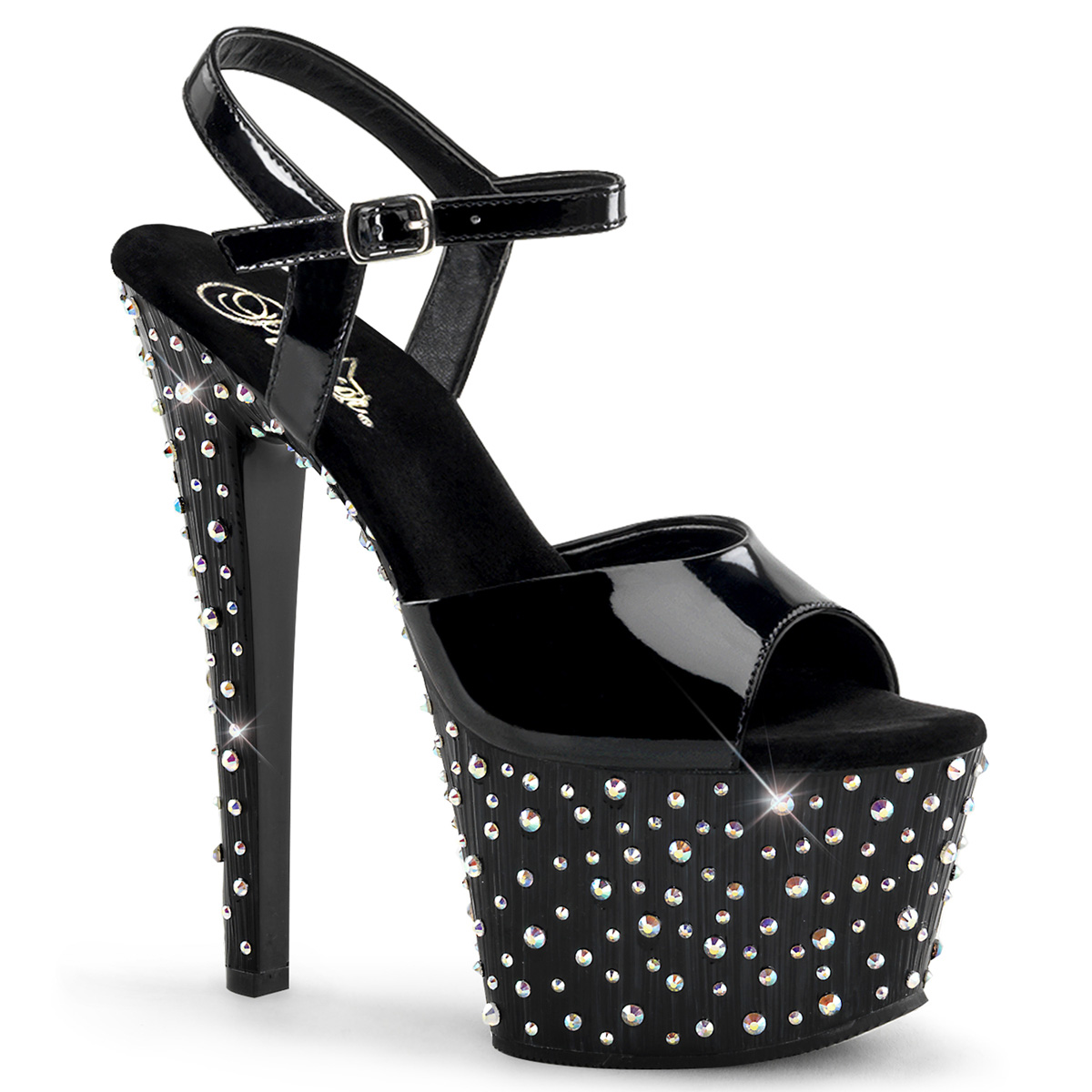 7"" (17.8cm) Heel, 2 3/4"" (7cm) Platform Ankle Strap Sandal Featuring Multi-Size Rhinestones Encrusted on the Bottom